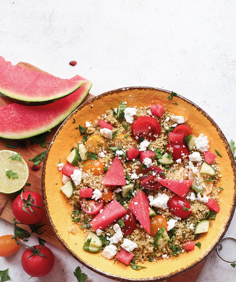 Σαλάτα με πλιγούρι, ντοματίνια, καρπούζι και φέτα