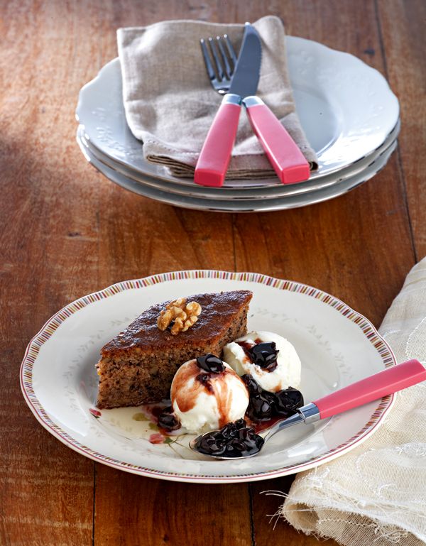 Αφράτο σιροπιαστό γλυκό που με μία μπάλα παγωτό βανίλια γίνεται το απόλυτο επιδόρπιο.
