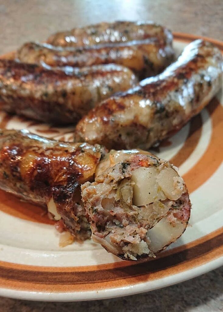 Το όνομά της παραπέμπει στη γιαγιά. Και έχει λογική: φτιάχνεται αργά, με υπομονή, με γνώση που δεν γράφεται σε συνταγολόγια. Το παχύ έντερο του χοίρου γεμίζεται με κομμάτια κρέατος και συκωτιού, ρύζι, ψιλοκομμένο πράσο, μπαχαρικά. Το πράσο δεν είναι τυχαίο: η γλυκάδα του εξισορροπεί τη λιπαρότητα, δίνει ισορροπία εκεί που άλλα υλικά θα βάραιναν. Η μπάμπω σιγοβράζει σε πήλινα σκεύη και σηματοδοτεί τη λήξη της νηστείας και την αρχή της γιορτής.