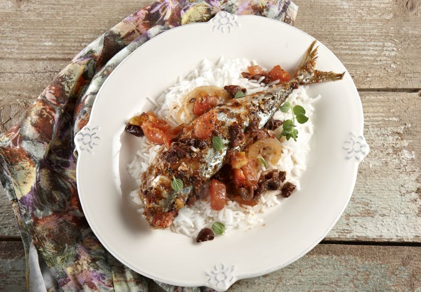 Κολιοί στον φούρνο με σάλτσα ντομάτας