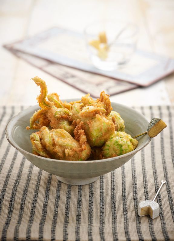 Οι κολοκυθοανθοί είναι ένας πρώτης τάξεως μεζές για μπίρα. Στην παρακάτω συνταγή τους γεμίζουμε με τυρί κρέμα με μυρωδικά, τους βυθίζουμε σε κουρκούτι και τους τηγανίζουμε για να κάνουν μια ωραία, τραγανή κρούστα.