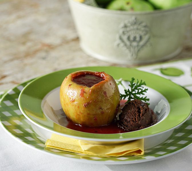 Μήλα γεμιστά με δαμάσκηνα και σάλτσα λευκού κρασιού