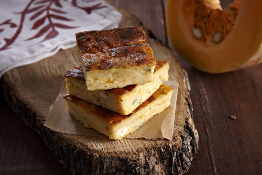 Μια εύκολη πίτα που δεν χρειάζεται φύλλο. Με το άρωμα και τη δροσιά της φθινοπωρινής φρέσκιας κολοκύθας. Τη σερβίρεις σαν πρώτο πιάτο με μια πράσινη σαλάτα, αλλά ταιριάζει και σαν συνοδευτικό γκρατέν σε ψητό κοτόπουλο ή κρέας.