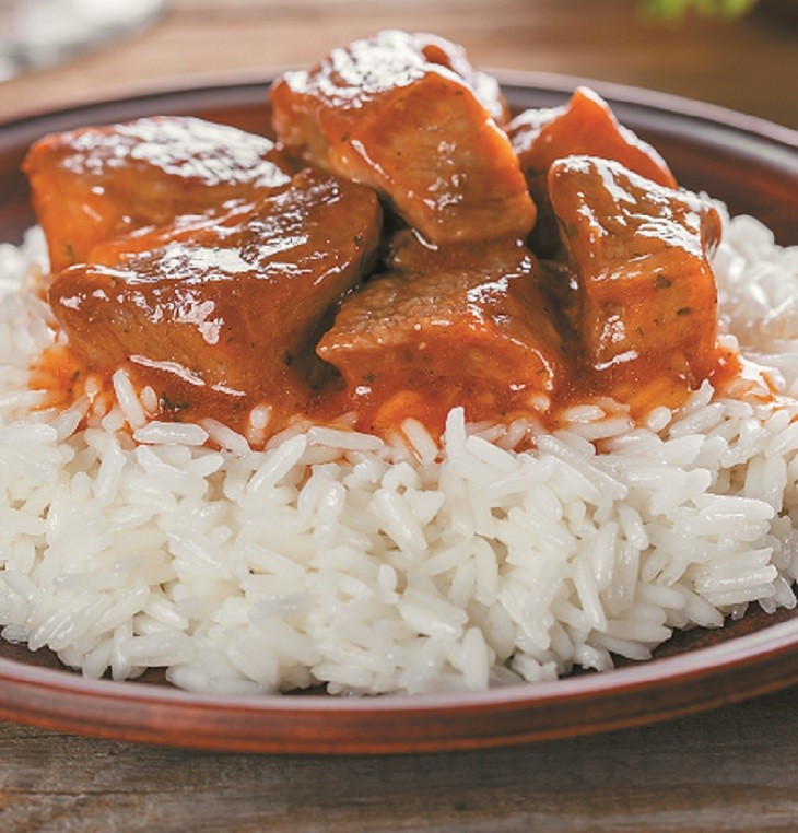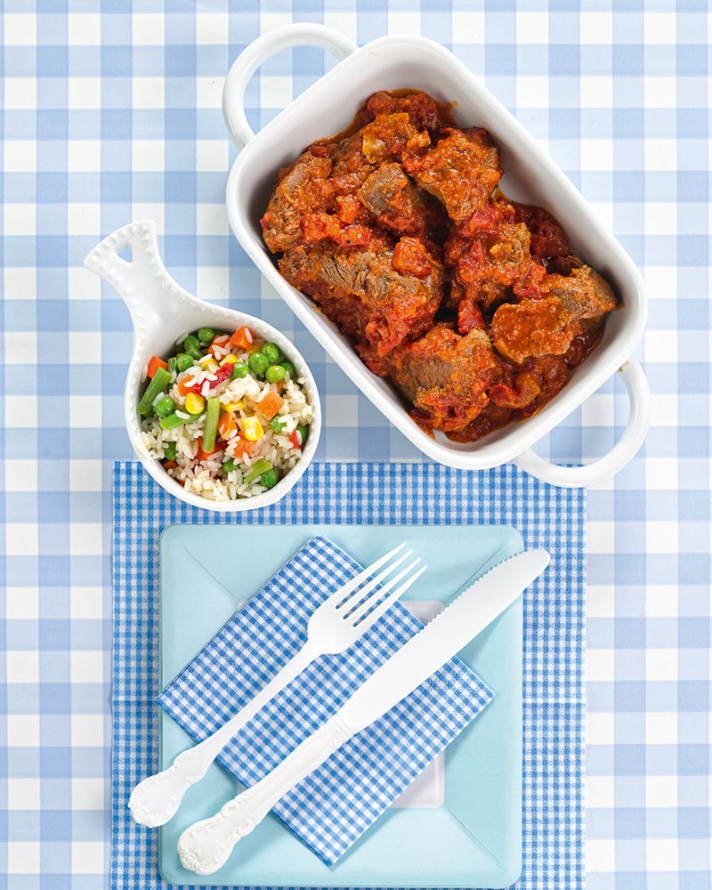 Μοσχαράκι κοκκινιστό με ρύζι πολύχρωμο