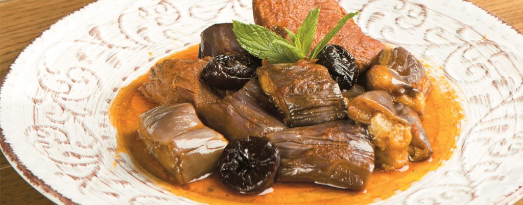Μοσχαράκι με μελιτζάνες και δαμάσκηνα