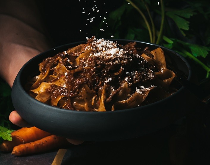 Ο Λάμπρος Βακιάρος αναμειγνύει το μοσχαράκι ραγού με χυλοπίτες και δημιουργεί ένα απολαυστικό αποτέλεσμα. Μην ξεχάσετε στο τέλος να βάλετε λίγο γραβιέρα και μαϊντανό.