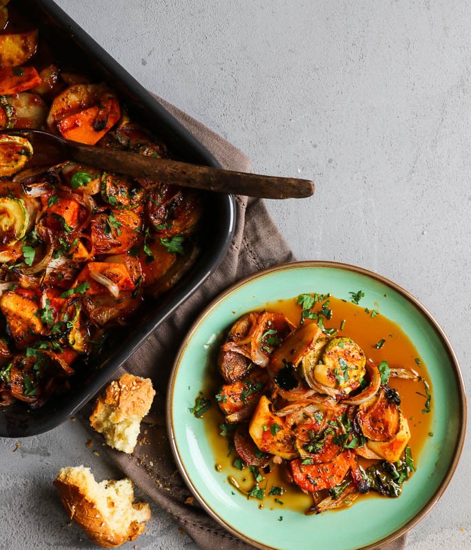 Φουρνίζουμε ένα πιο ανοιξιάτικο μπριάμ με τα τελευταία λαχανικά του χειμώνα και τα πρώτα της άνοιξης και το σερβίρουμε με μπόλικο τραγανό φρέσκο ψωμί.