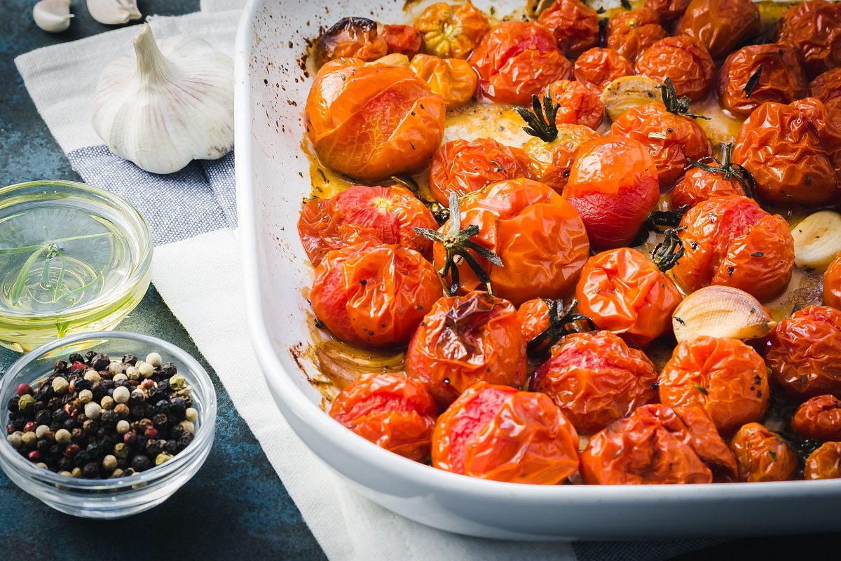 Οι κόκκινες ζουμερές ντομάτες πρωταγωνιστούν κάθε καλοκαίρι στο τραπέζι μας. Από την παγκοσμίου φήμης χωριάτικη σαλάτα και τα μαμαδίστικα γεμιστά, μέχρι τους ταπεινούς αλλά υπέροχους καγιανάδες και τις αρωματικές σάλτσες, οι ντομάτες είναι μια από τις πιο ευέλικτες πρώτες ύλες και μπορεί να απογειώσει τα πιάτα μας, ειδικά αν είναι στα καλύτερά της. Ακόμα μια πεντανόστιμη εκδοχή είναι να τις ψήσουμε στο φούρνο σε πολύ λίγο χρόνο και με ελάχιστο κόπο.