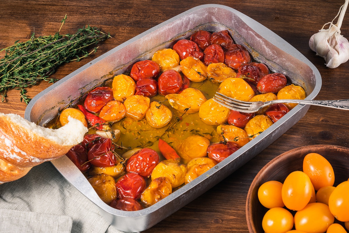 Μπορούμε να βάλουμε είτε ντομάτες πομοντόρο είτε άλλες μεγαλύτερες, όμως πρέπει να θυμόμαστε ότι μαγειρεύουμε τις μικρότερες λιγότερο από όσες είναι μεγαλύτερες σε μέγεθος. Αν μας περισσέψουν, διατηρούνται καλά για λίγες μέρες, ενώ μπορούν να καταψυχθούν και να ενσωματωθούν αργότερα σε συνταγές, παρόλο που θα χάσουμε λίγη από τη φρεσκοψημένη υφή τους. Έτσι, μπορούμε να χρησιμοποιήσουμε τις ψητές ντομάτες που καταψύξαμε στις σάλτσες μας, σε μαρινάδες και σούπες.