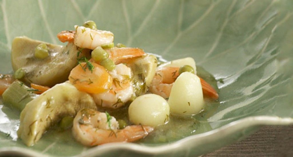 Το κλασικό, πεντανόστιμο και νηστίσιμο φαγάκι με τις αγκινάρες, τις πατάτες, τον αρακά, τα καρότα και τον άνηθο, με την προσθήκη της γαρίδας απογειώνεται γευστικά.