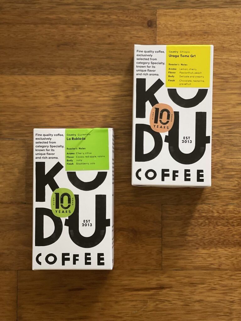 Ένα καφέ λίτρου και έναν espresso μας προτείνουν από την εταιρία Kudu. Ο πρώτος είναι ένας ωραίος καφές από την Αιθιοπία με γεμάτο σώμα, έντονο άρωμα από λεμόνι και κεράσι, που χαρίζει γεύσεις από σοκολάτα, νεκταρίνι και γκρέιπφρουτ. Μπορείτε να τον σερβίρεται μετά από το εορταστικό σας γεύμα μαζί με ένα σοκολατένιο γλυκό. Ο δεύτερος που είναι για espresso έρχεται από την Γουατεμάλα και το κύριο χαρακτηριστικό του είναι το κακάο και το κόκκινο μήλο. Με τον συγκεκριμένο καφέ μπορείτε να ξεκινήσετε όμορφα τη μέρα σας ή να τον σερβίρετε στο τέλος ενός δείπνου.