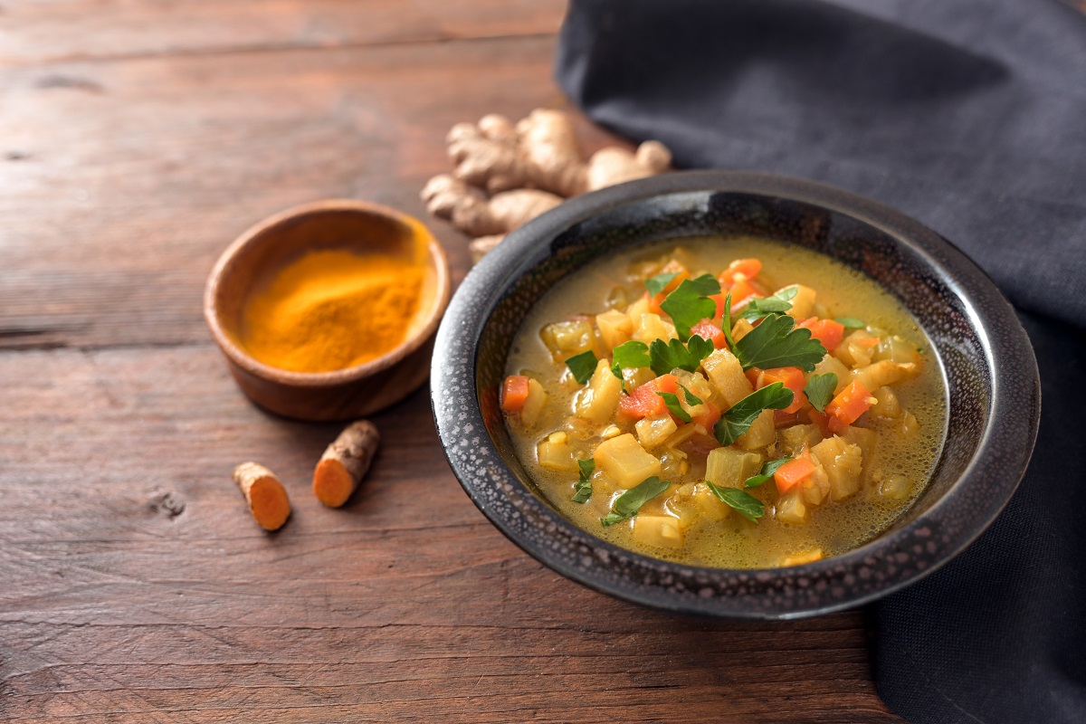 Ένα μπολ με σούπα λαχανικών ή κοτόπουλου, ακόμα και οσπρίων όπως η ροβίτσα με κουρκουμά και τζίντζερ γίνεται πιο δελεαστικό όταν είναι πάρει το χρυσαφένιο χρώμα του κουρκουμά.