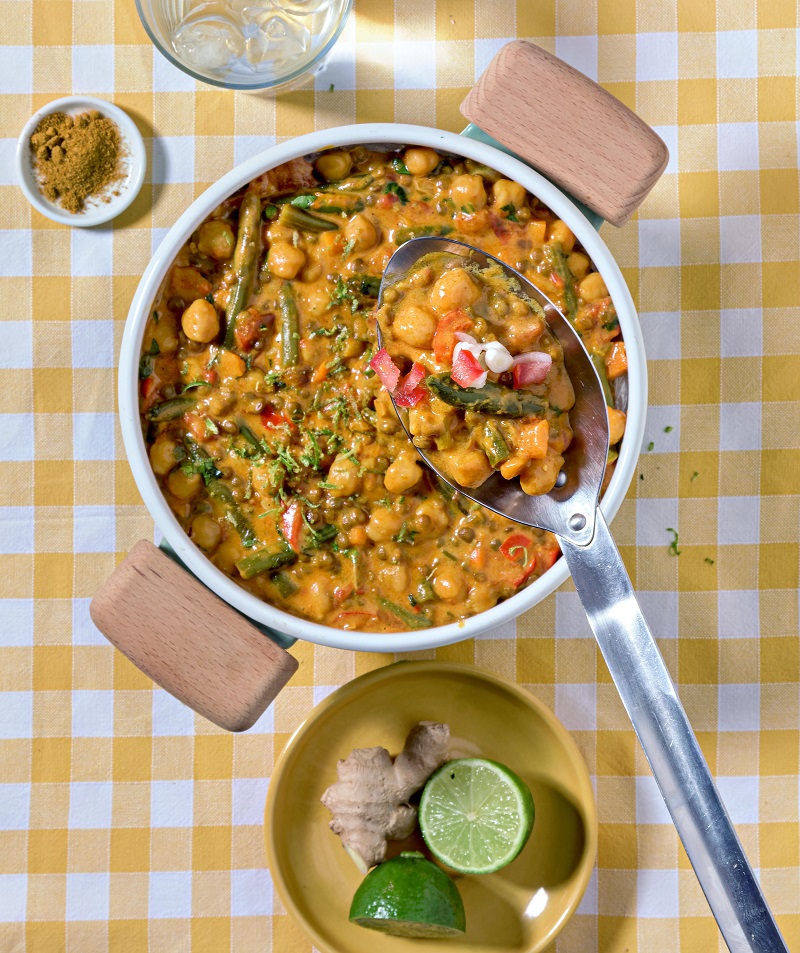 Κάρι καλοκαιρινών λαχανικών με φακές και ρεβίθια
