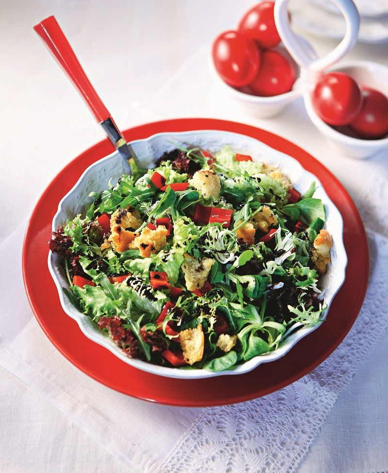 Πράσινη σαλάτα με πιπεριές και κρουτόν