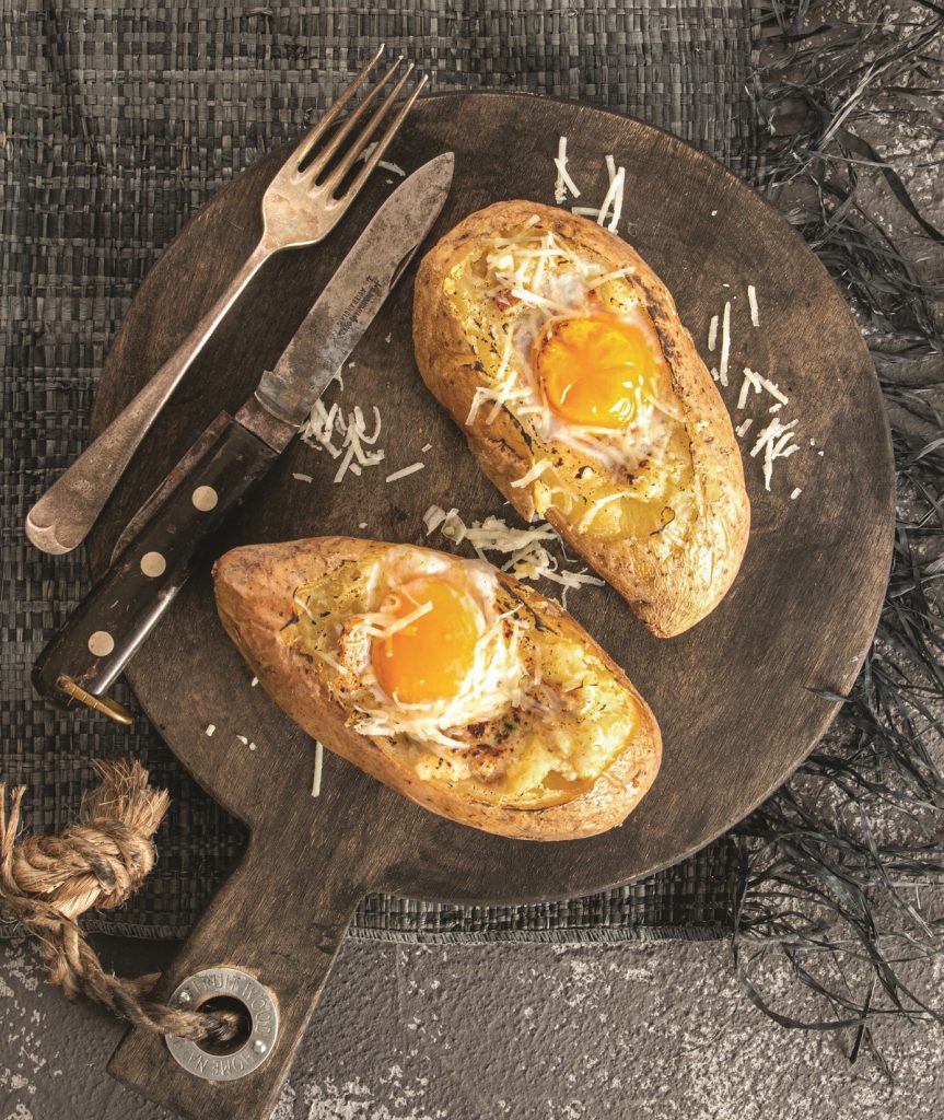 Ψητές πατάτες στον φούρνο με σύγκλινο, αυγό μελάτο και μαϊντανό