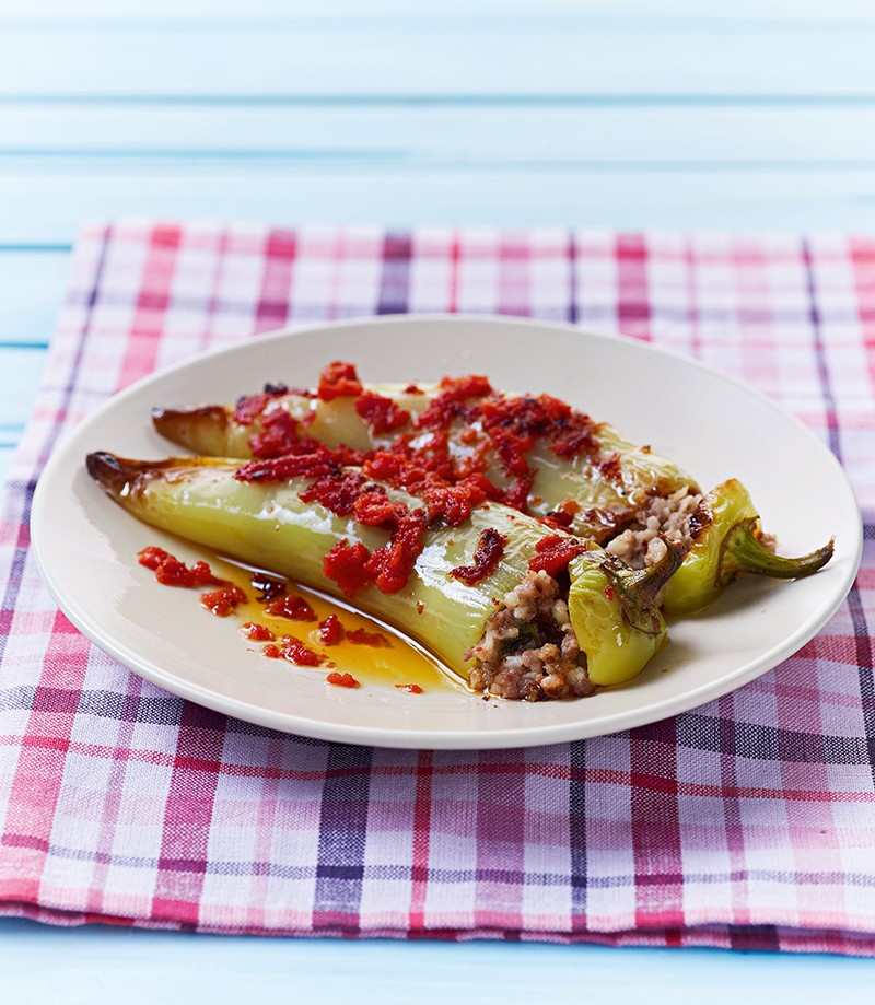 Πιπεριές κέρατα γεμιστές με κιμά και πλιγούρι