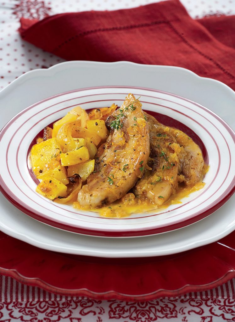 Χοιρινές πανσέτες με σάλτσα πορτοκάλι και κονιάκ