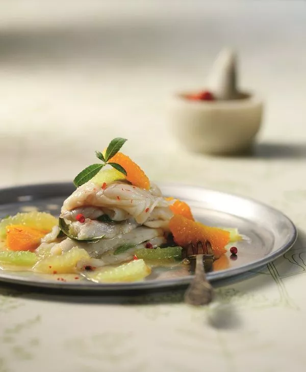 Λαβράκι μαριναρισμένο με λουίζα και εσπεριδοειδή