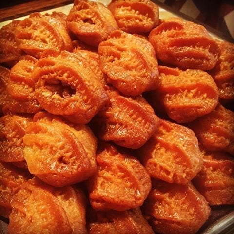 Και σιγά-σιγά με το πιρούνι, το τσιμπιδάκι, το βελόνι ή ό,τι άλλο έκοβε η ευστροφία τους, κεντούσαν επάνω οριζόντιες και κάθετες γραμμές. Για τη χάρη περισσότερο αλλά είχε και μια πονηριά η τέχνη γιατί έτσι όπως «έσκαβαν» τη ζύμη δημιουργώντας ρυάκια έπεφτε πάνω το σιρόπι που πότιζε τα ισλί κάνοντας τα ακόμα πιο πριγκιπικά.