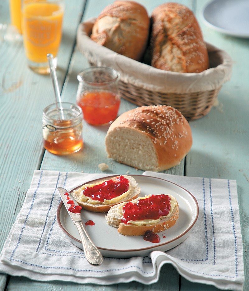 Αυτός ο τύπος ψωμιού δεν έχει σκληρή κόρα και εσωτερικά είναι πάρα πολύ αφράτο. Συνδυάστε το με τη μαρμελάδα που ακολουθεί.