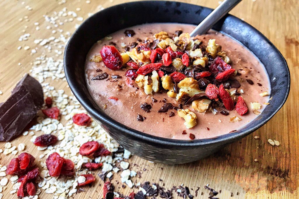 Πρωτεϊνούχο πόριτζ σοκολάτας με γκότζι μπέρις