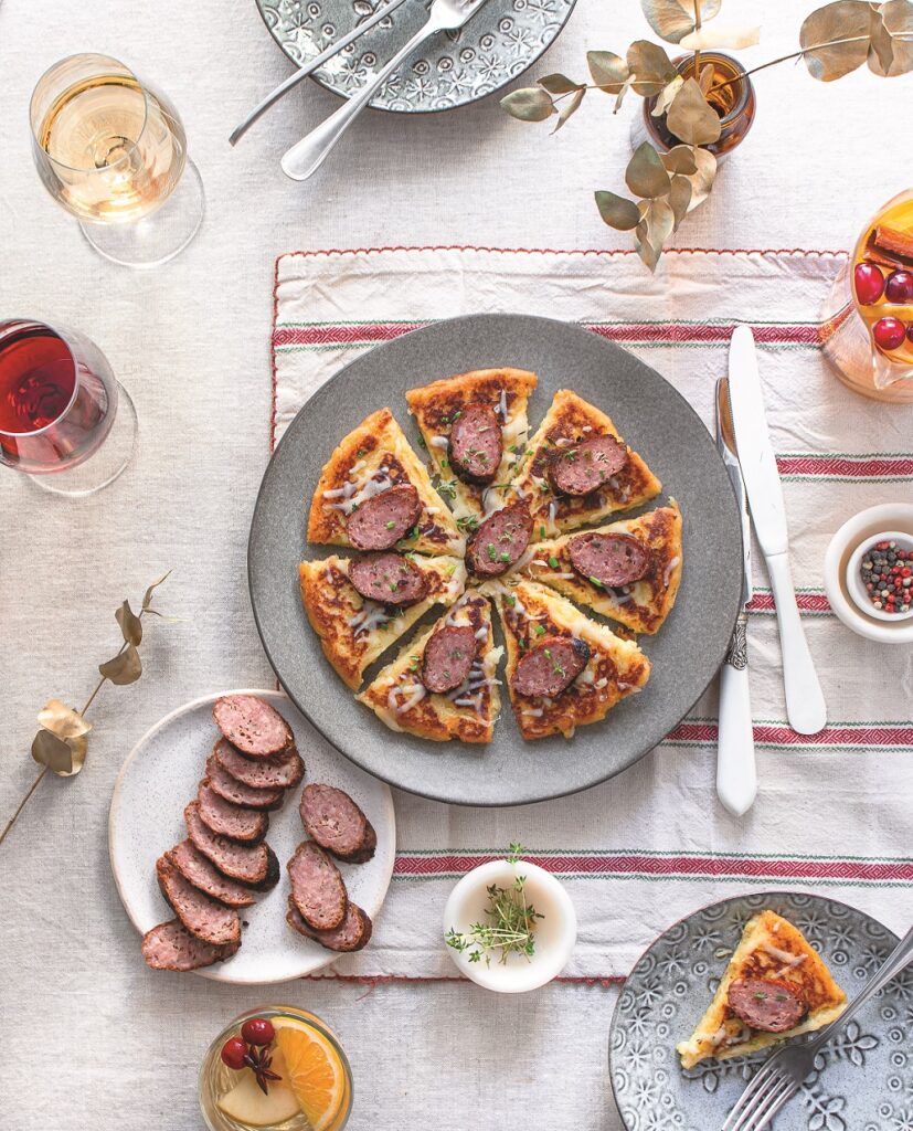 Πατατόπιτα με χωριάτικο λουκάνικο και γραβιέρα