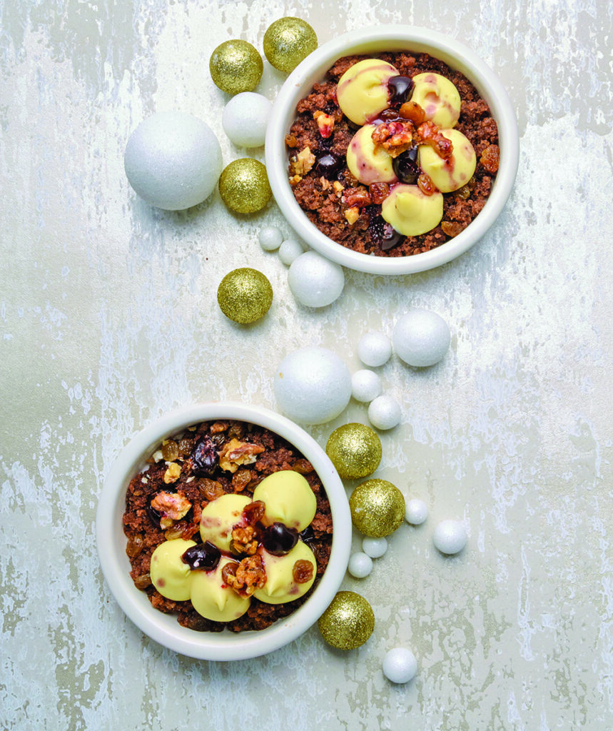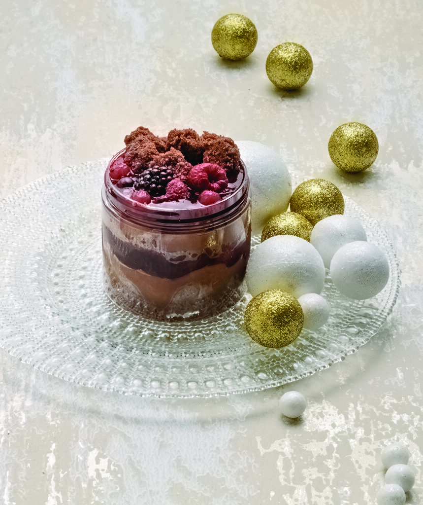 4. Bitter cremeux με crumble κακάο & μαρμελάδα κόκκινων φρούτων