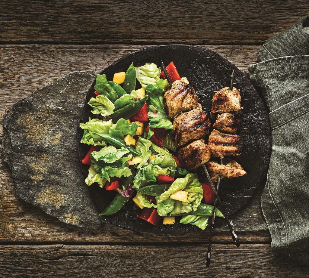 1. Εξωτικά σουβλάκια κοτόπουλου με σαλάτα μάνγκο