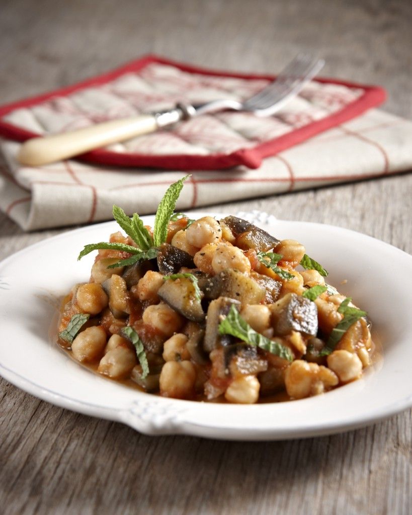 Μελιτζάνες με ρεβίθια και δυόσμο