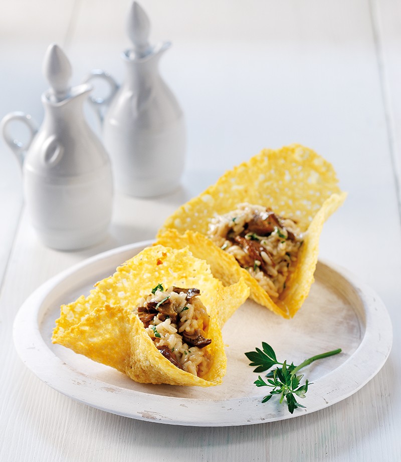 Ριζότο με μανιτάρια σε φωλιές παρμεζάνας