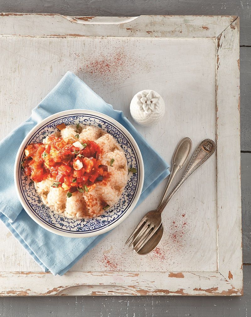 Πιλάφι με σάλτσα από τα υλικά της χωριάτικης