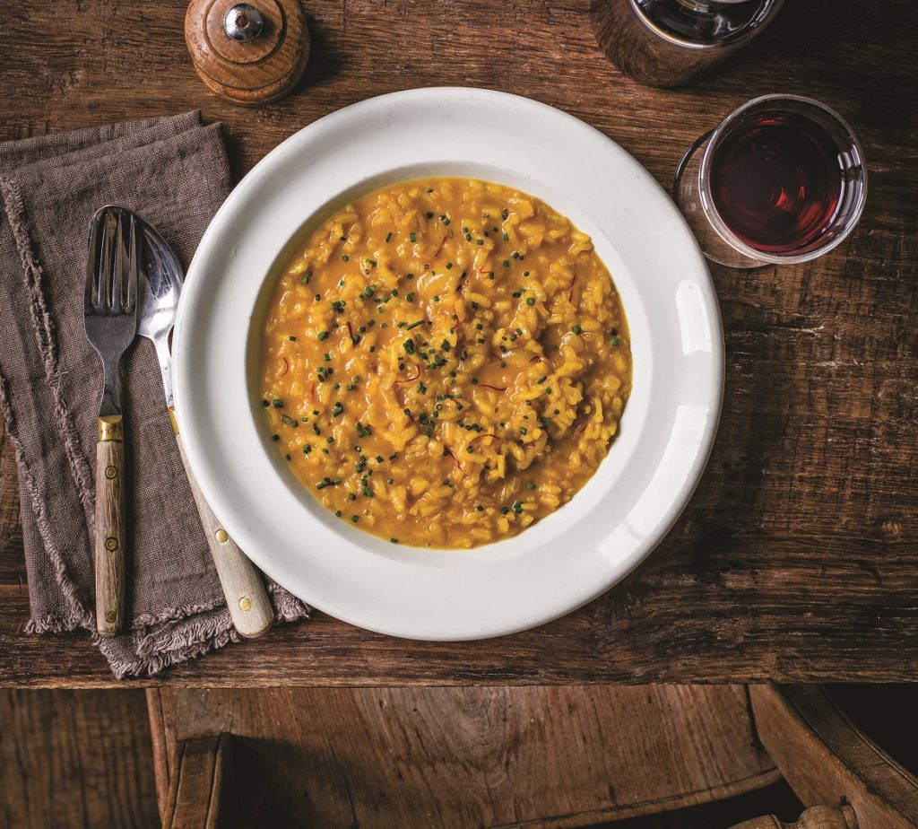 Ένα αρωματικό ριζότο με κρόκο Κοζάνης, φτιαγμένο με ρύζι αρμπόριο και χυλωμένο τέλεια, είναι πάντα ένα καλοδεχούμενο πιάτο σε κάθε τραπέζι.