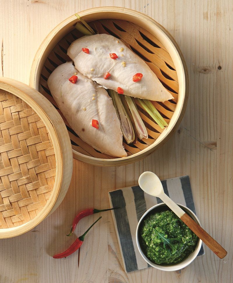 Μία ελαφριά συνταγή, ιδανική για περιόδους δίαιτας και όχι μόνο. Το μαγείρεμα στον ατμό είναι ιδανικό για να ετοιμάσετε υγιεινά πιάτα, ενώ η προσθήκη συστατικών στο σκεύος αλλά και η σάλτσα που συνοδεύει το κοτόπουλο, δίνουν στο φαγητό έξτρα νοστιμιά.