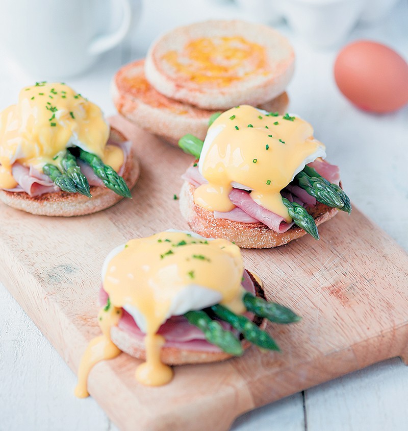 Ελαφρώς βρασμένο ή ψητό μαζί με αβγό ποσέ και μια φέτα ζαμπόν πάνω σε ψημένο ψωμί ή σφολιάτα είναι η πιο κλασική συνταγή για σπαράγγια.