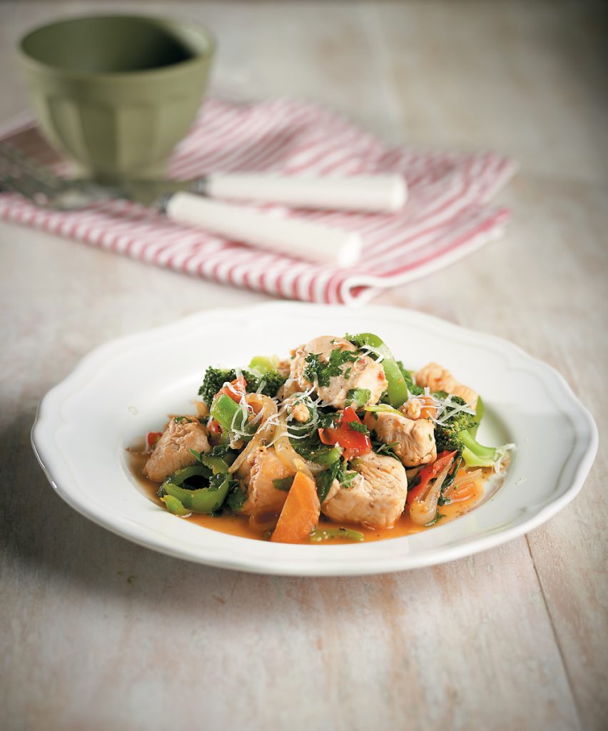 Μια κοτοτηγανιά άλλη υπόθεση! Γρήγορη, εύκολη, μυρωδάτη και νόστιμη. Το μυστικό είναι στο γρήγορο σοτάρισμα όλων των υλικών σε πολύ υψηλή θερμοκρασία. Σε 15 λεπτά στο πιάτο!
