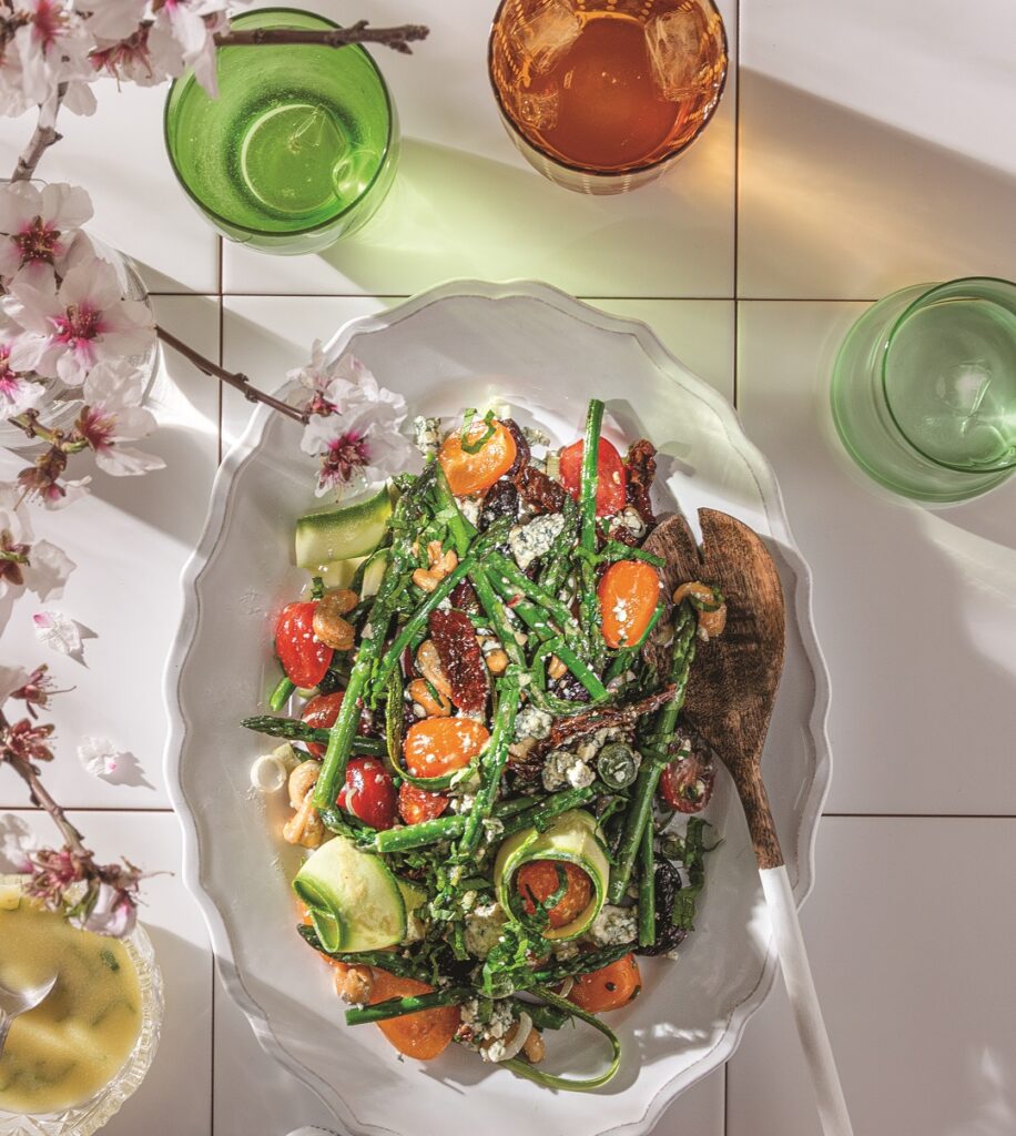 Σαλάτα με σπαράγγια, ντοματίνια, κάσιους και ροκφόρ