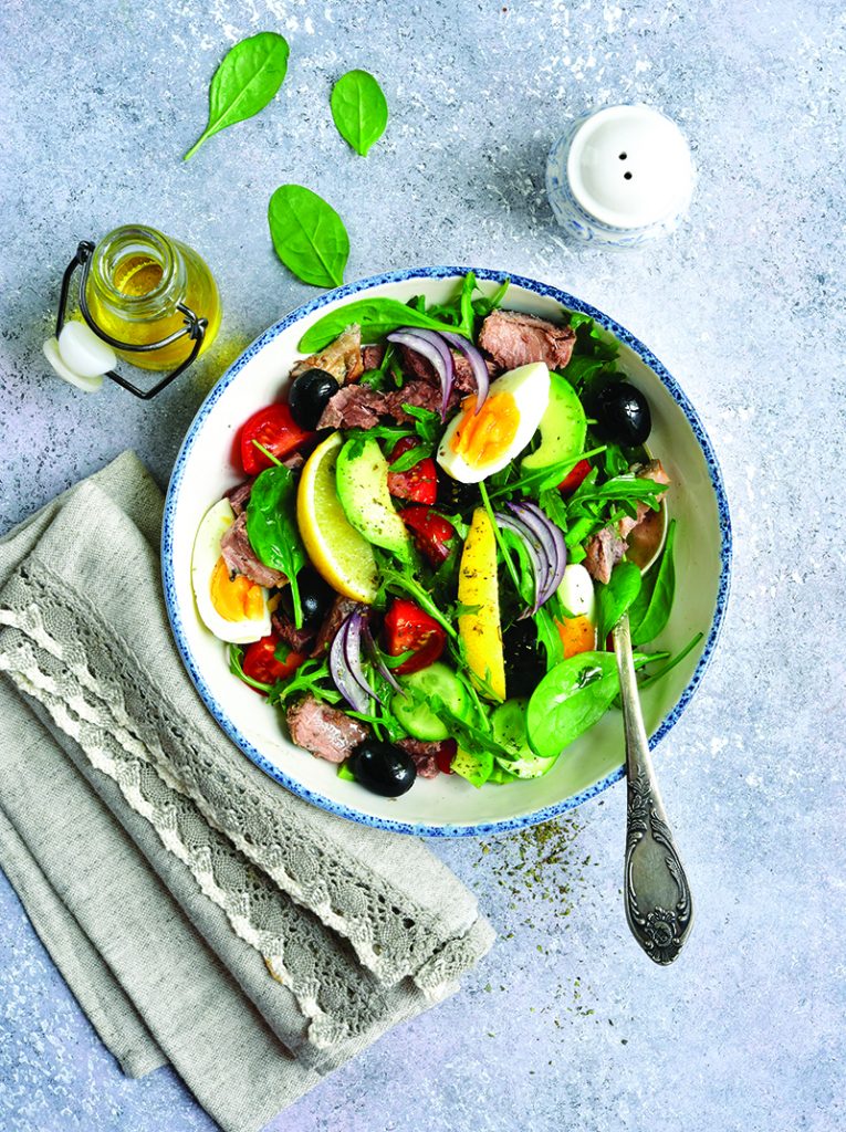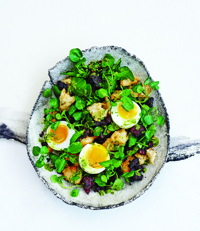 2. Πράσινη σαλάτα με αβγά και συκωτάκια αρνιού