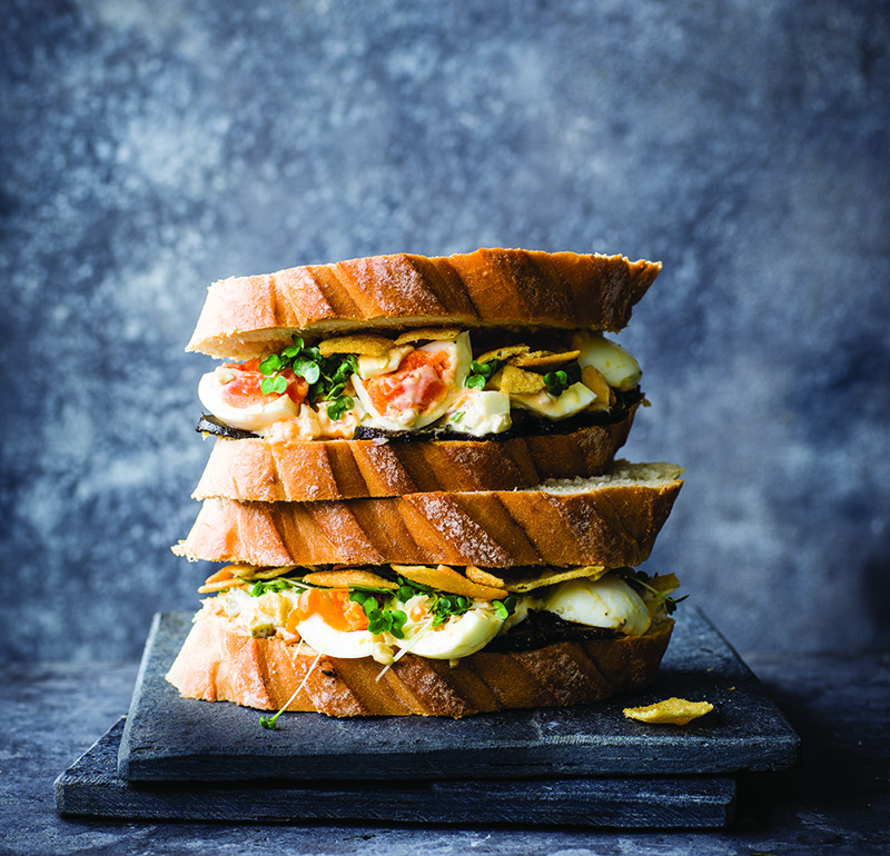 5. Σάντουιτς με ρώσικη σαλάτα, αβγά βραστά, πατατάκια και σχοινόπρασο