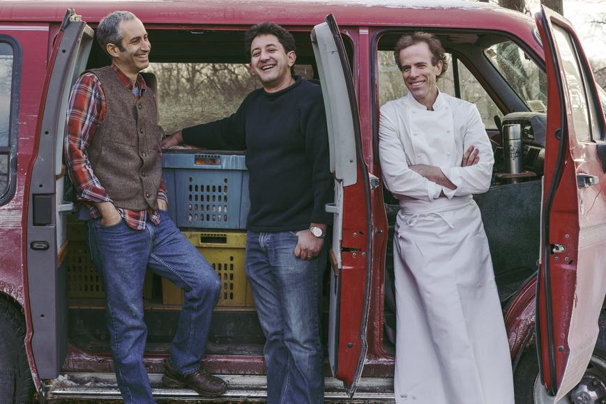 Ο Dan Barber (δεξιά), σεφ του Blue Hill και Blue Hill at Stone Barns, δημιουργός του project WastEd, με τους συνδημιουργούς του Row 7 seeds, Michael Mazourek και Matthew Goldfarb.