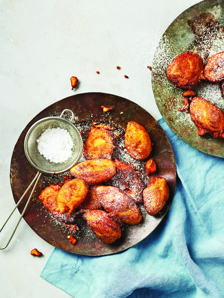 Γεμίζουμε ένα τηγάνι κατά το ένα τρίτο με λάδι και ζεσταίνουμε σε δυνατή φωτιά. Βουτάμε καθένα από τα κομμάτια της μπανάνας στο κουρκούτι, βεβαιωνόμαστε ότι έχουν καλυφθεί πλήρως και, στη συνέχεια, χαμηλώνουμεσε μέτρια φωτιά. Τηγανίζουμε σε δόσεις για 2΄ μέχρι να ροδίσουν παντού. Στραγγίζουμε σε χαρτί κουζίνας, πασπαλίζουμε με ζάχαρη άχνη και σερβίρουμε.