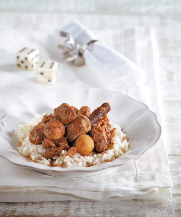 Αρνάκι κοκκινιστό στην κατσαρόλα με κάστανα και χυμό ροδιού