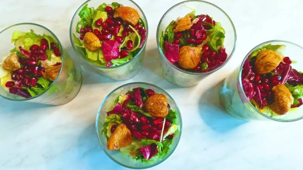 Σαλάτα με βινεγκρέτ εσπεριδοειδών, ρόδι και κάστανα