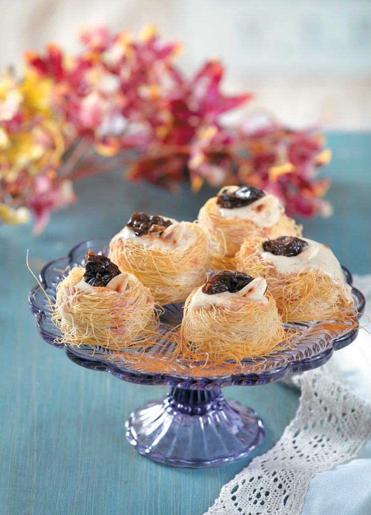 Φωλιές κανταΐφι με δαμάσκηνα και κρέμα χαλβά