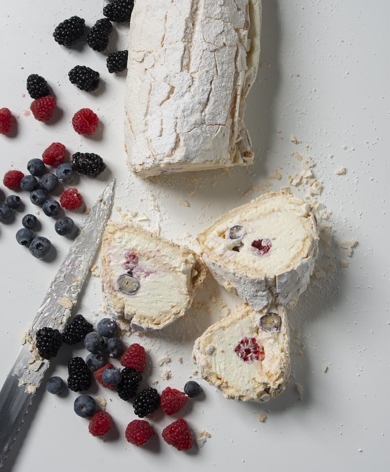 Φτιάχνουμε ρολό μαρέγκας με γλυκόξινα φρούτα του δάσους σε μια συνταγή που θα κλέψει τις εντυπώσεις σε κάθε τραπέζι.