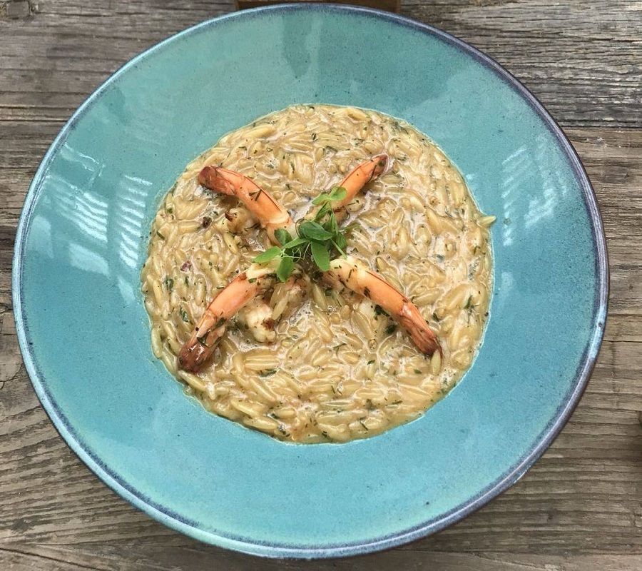 Κριθαρότο με γαρίδες και παλαιωμένη γραβιέρα