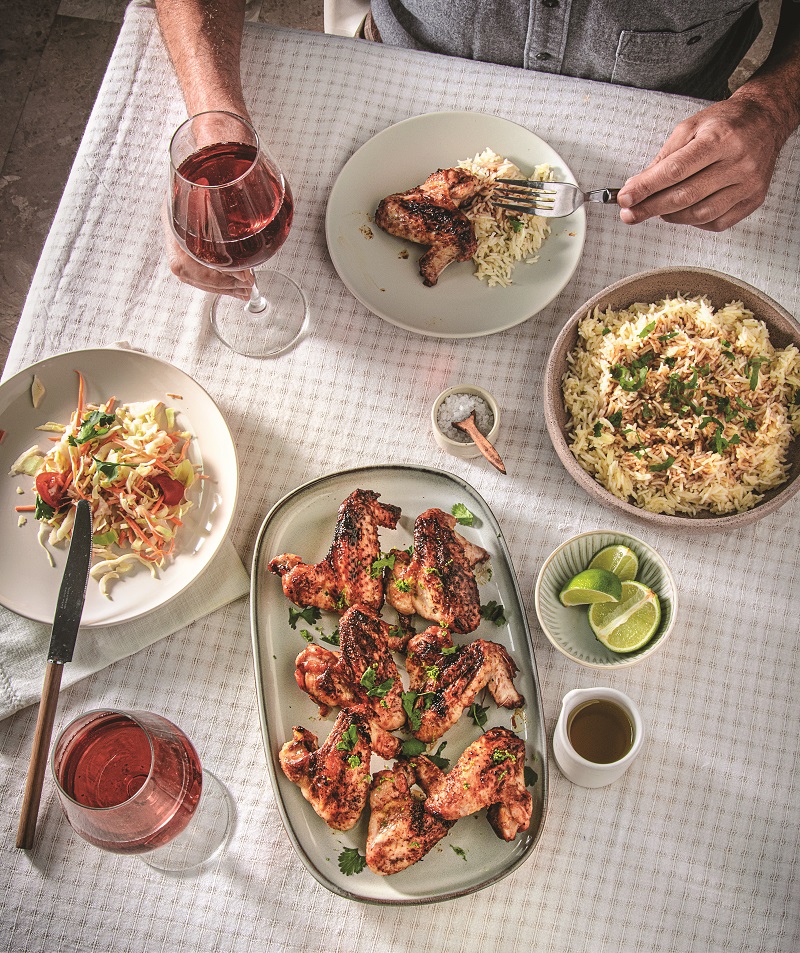 Φτερούγες κοτόπουλου και ρύζι μπασμάτι