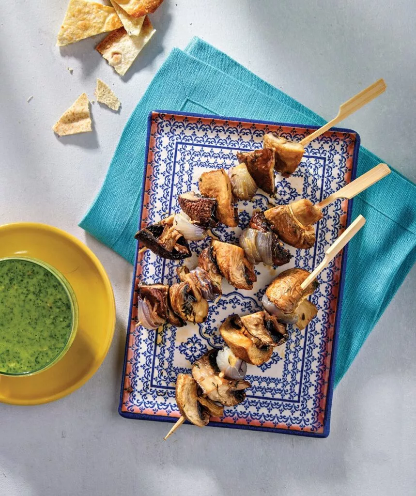 Σουβλάκια μανιταριών στη σχάρα με σάλτσα chimichurri