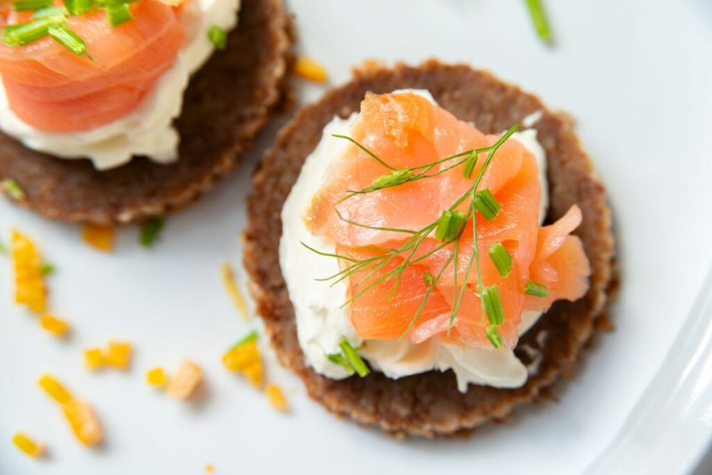 Στα γιορτινά ορεκτικά η σίγουρη επιλογή ξεκινά από εκλεκτές πρώτες ύλες, που συνήθως είναι και ακριβές, άρα βγάζουν κατά τεκμήριο μια αίσθηση πολυτέλειας. Ξεκινώντας απ’ τα θαλασσινά, κλασικές αξίες είναι οι γαρίδες (πάντα καθαρισμένες), το χαβιάρι, το αυγοτάραχο και ο καπνιστός σολομός.