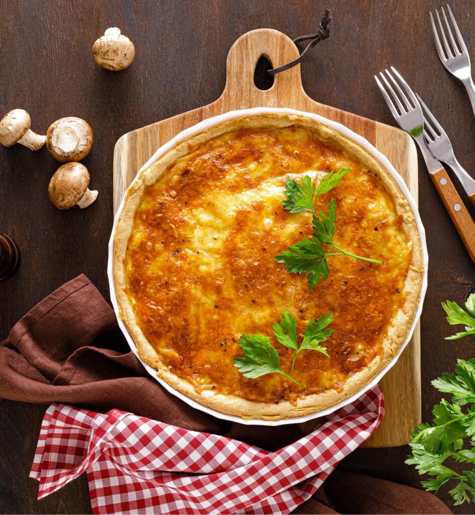 Ανοιχτή πίτα κοτόπουλου με πουρέ μανιταριών