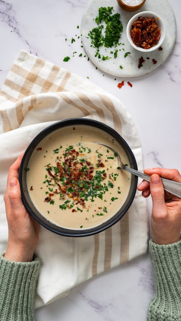 Βελουτέ σούπα μανιταριών με μπέικον